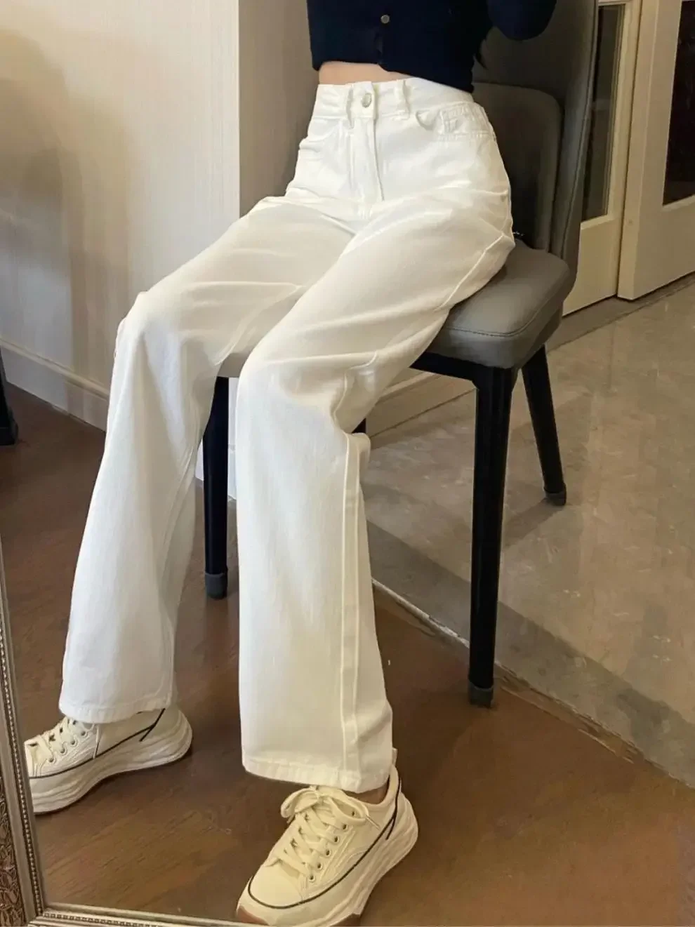 • Slimming All-match :With their straight leg cut and white color, these jeans are versatile all-match pieces that can be paired with any top for a chic and stylish look.